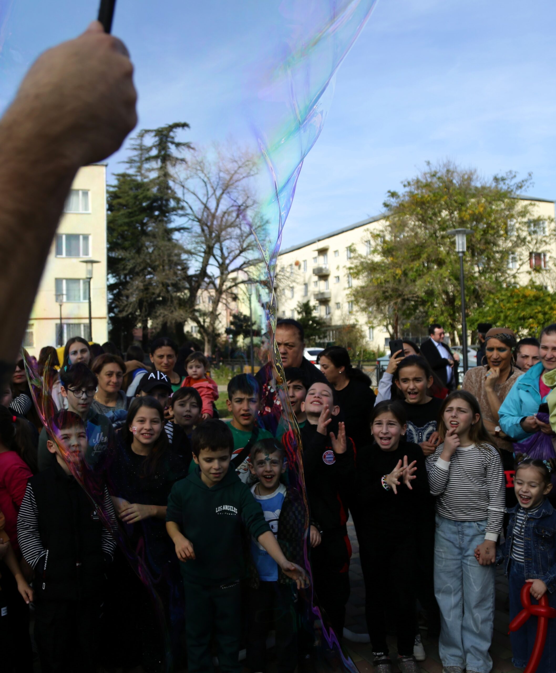 გასართობი პროგრამა ანიმატორებთან და ზღაპრის პერსონაჟებთან ერთად მრავალფეროვან აქტივობებს, გუნდურ და ინტერაქტიულ თამაშებს, საპნის ბუშტების, მასკოტებისა და აზოტის შოუს მოიცავდა, რომელშიც 200-მდე აფხაზეთიდან დევნილი ბავშვი მონაწილეობდა.